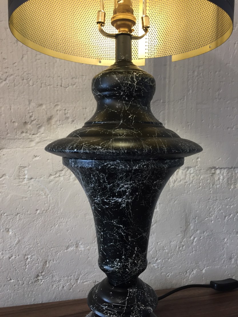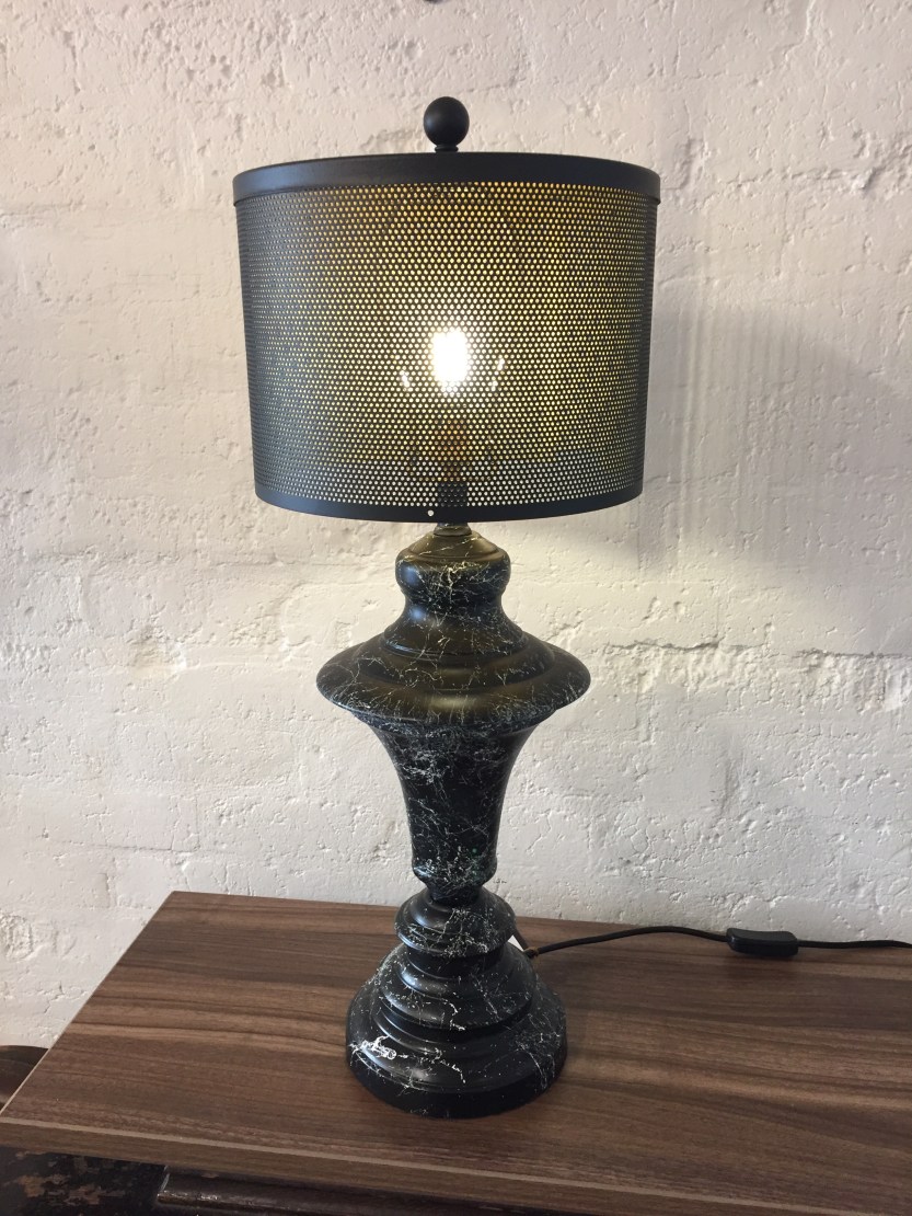 Made from salvaged steel and brass, with a black, gold and marble finish. Only one remaining. $160 $100