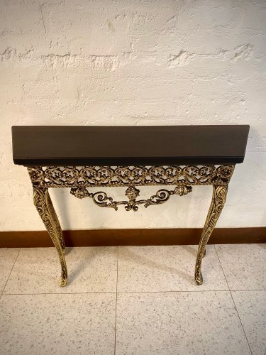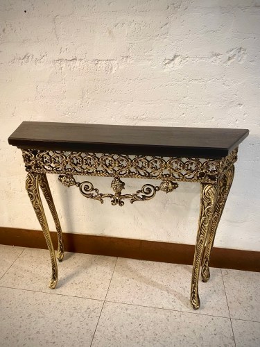 Gilded console table October 9, 2023 Leave a Comment by scattergun Uncategorized Distinctive hall or console table with a gilded wrought steel frame and a new dark-stained jarrah top. Measures 83cm high, 28cm deep and 103 cm wide. $295 $200 Share this: Share on X (Opens in new window) X Share on Facebook (Opens in new window) Facebook Like Loading... Categories: Uncategorized