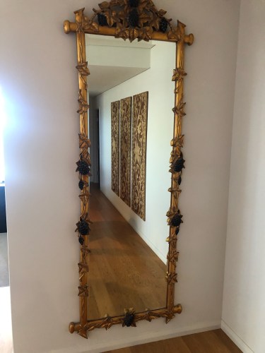 Gold Carved Wood Hall Mirror November 14, 2023 Leave a Comment by scattergun Uncategorized A beautiful and very tall carved wood-frame mirror with grape-vine detailing in a gold finish. It features bevelled-edge glass and is in immaculate condition. Measures: 228cm high by 76 cm wide $750 $450 Share this: Share on X (Opens in new window) X Share on Facebook (Opens in new window) Facebook Like Loading... Categories: Uncategorized